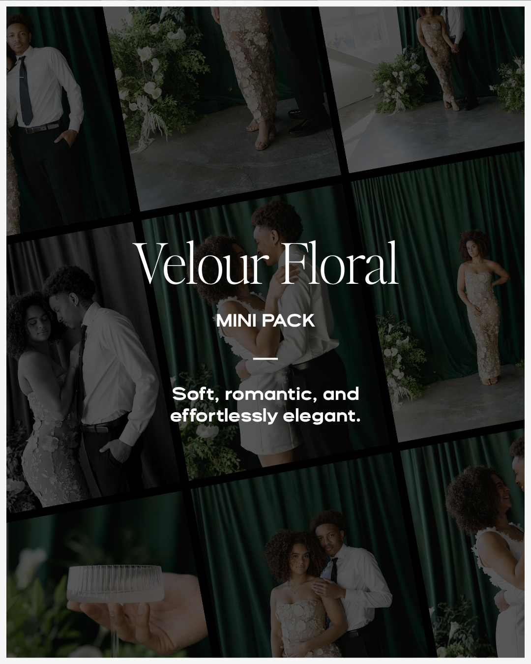 The Velour Floral Mini Pack includes 14Â photos. To receive the full gallery, sign up for the membership [here].